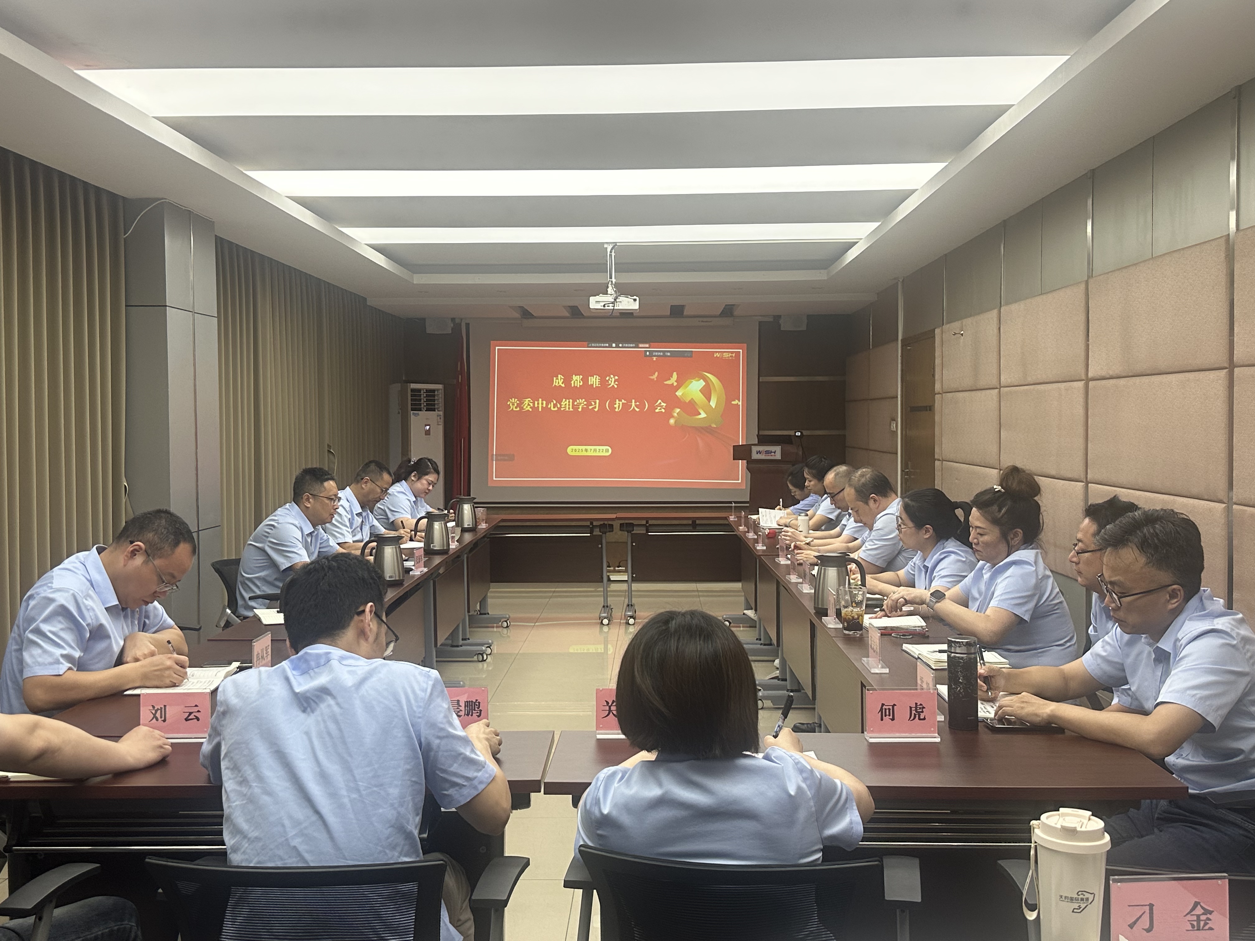 2025年7月22日,成都唯實召開黨委中心組學(xué)習(xí)(擴大)會,會議由黨委書記、董事長張海軍主持,公司兩委委員、全體管理干部、各黨支部書記及委員、持股公司負(fù)責(zé)人參加學(xué)習(xí)。